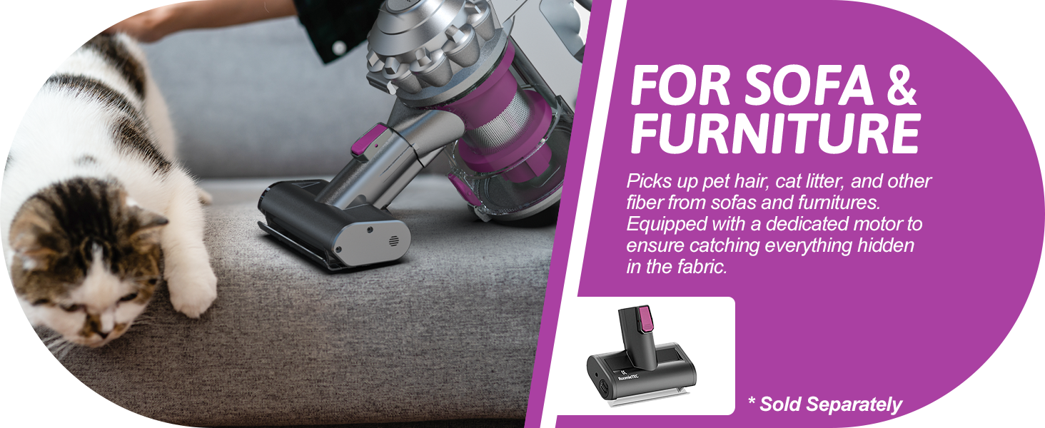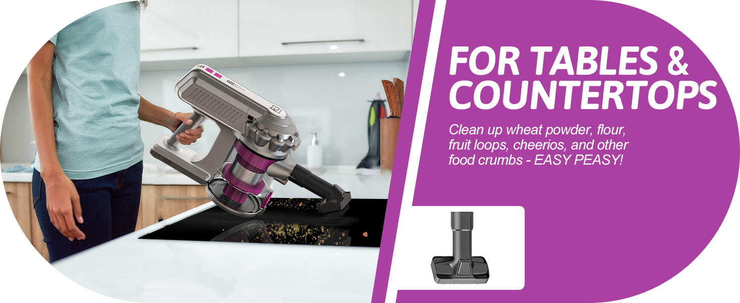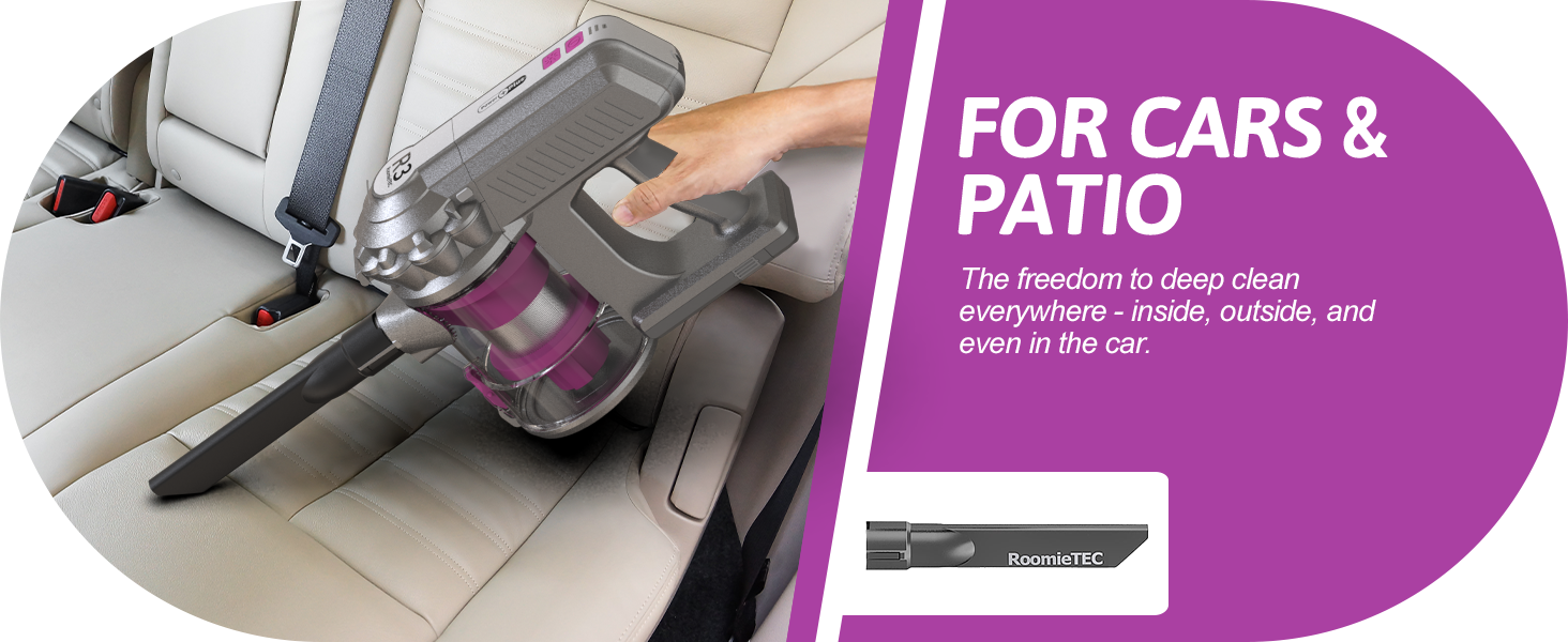 - Our cordless stick vacuum comes with a highly maneuvable, 180 degree swivel head, which can turn full flat to the ground and reach tight spaces under your furniture.